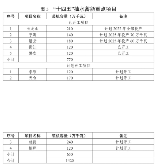 有序發(fā)展抽水蓄能電站。積極推進(jìn)長(zhǎng)龍山、寧海、縉云、衢江、磐安等抽水蓄能開工項(xiàng)目的建設(shè),穩(wěn)妥開展泰順、天臺(tái)等抽水蓄能電站項(xiàng)目前期工作,適時(shí)啟動(dòng)建德、桐廬站點(diǎn)的前期工作。結(jié)合現(xiàn)有站點(diǎn),合理規(guī)劃布局,積極推動(dòng)新一輪抽水蓄能電站選點(diǎn)工作。加強(qiáng)抽水蓄能電站建設(shè)管理體制、電價(jià)機(jī)制等研究。"十四五"期間,全省抽水蓄能電站力爭(zhēng)新增裝機(jī)容量 340 萬(wàn)千瓦,累計(jì)裝機(jī)容量達(dá)到798 萬(wàn)千瓦。