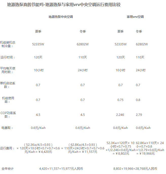 地源熱泵真的節(jié)能嗎-地源熱泵與一般空調(diào)運行費用對比