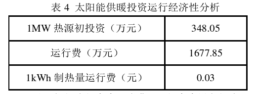 注:初投資僅考慮一類費(fèi),即僅考慮設(shè)備投資及項(xiàng)目建設(shè)投資,未包含末端及管網(wǎng)投資;運(yùn)行費(fèi)在集熱器循環(huán)泵和供暖循環(huán)泵運(yùn)行費(fèi)基礎(chǔ)上,考慮 1.3的系數(shù),用于設(shè)備運(yùn)維投入及補(bǔ)水消耗等。