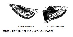 松散沉積物含水層之間的黏性土層,并不完全隔水,且具有微透水性。具有一定水頭 差的相鄰含水層,通過弱透水層發(fā)生的滲透,稱為越流。顯然,隔水層越薄,隔水性越差, 相鄰含水層之間的水頭差越大,則越流補給量越大。盡管單位面積上的越流量通常很小, 由于越流是在弱透水層分布的整個范圍內(nèi)發(fā)生,總的補給量也是相當(dāng)可觀的。