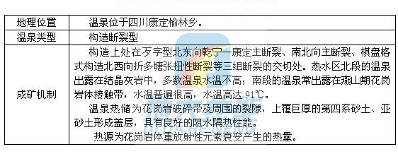 ![]() | 四川康定榆林溫泉風景榆林溫泉在地下10米以內(nèi),水溫高達91℃,流出地面的溫度可達到50℃,流量達5L/s。水溫高,壓力大,而且含有多種元素和化合物。 |
